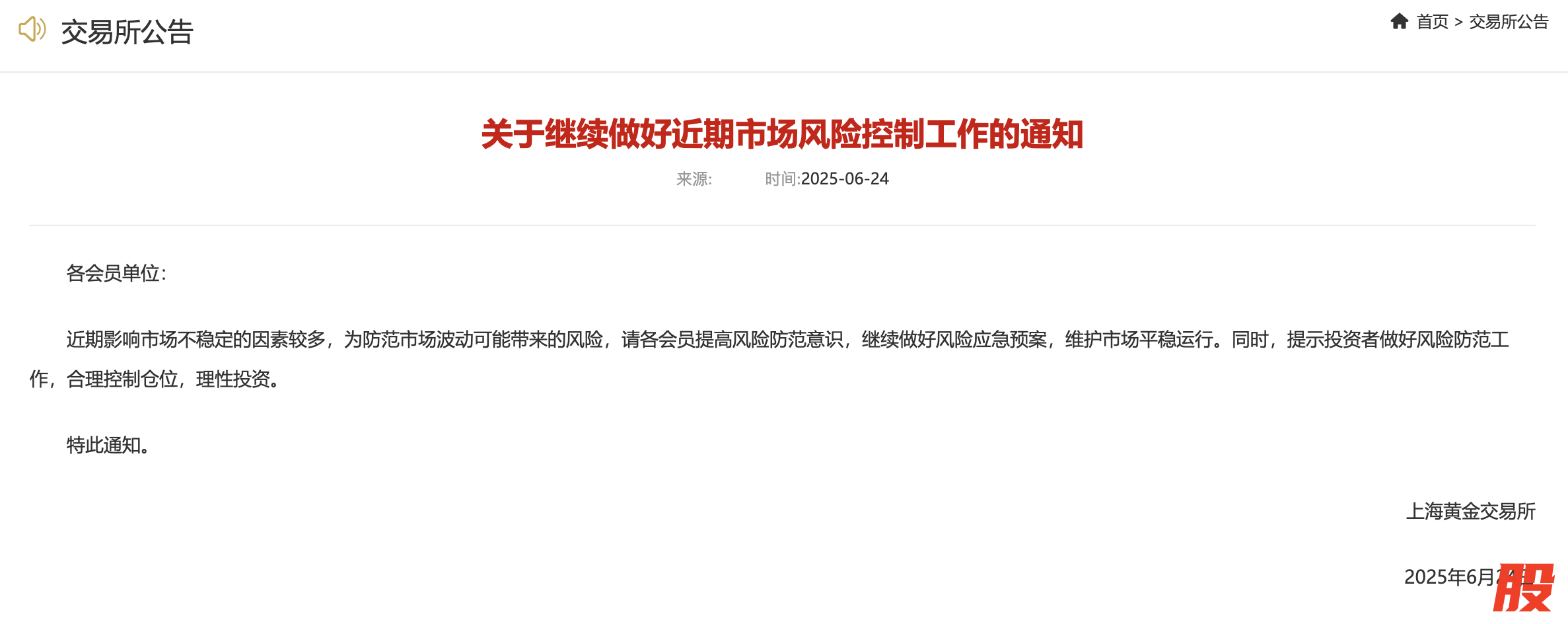 上金所发布关于继续做好近期市场风险控制工作的通知上金所发布关于继续做好近期市场风险控制工作的通知