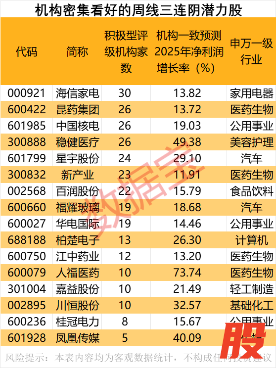 机构密集看好的周线三连阴潜力股机构密集看好的周线三连阴潜力股